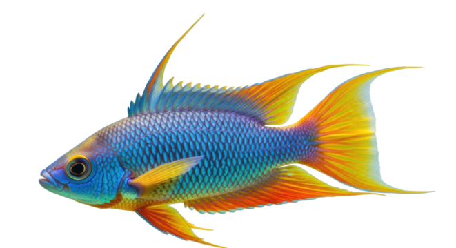 Isolated Colorful Bolivian Ram Cichlid Fish on Display, Tropical Freshwater Aquarium Pet