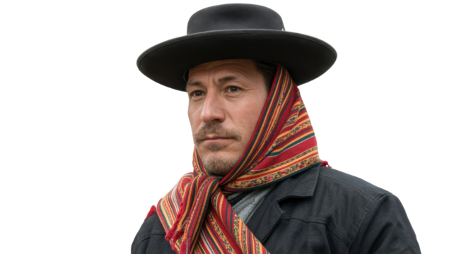 Man wearing hat and colorful scarf