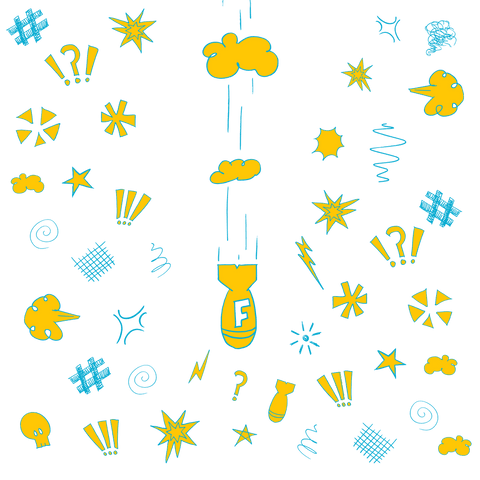 Dark graphic of a bomb with a lit fuse.  Simple, stylized illustration of a bomb against a black background.  The bomb is dark gray, and the fuse is a lighter gray with radiating sparks