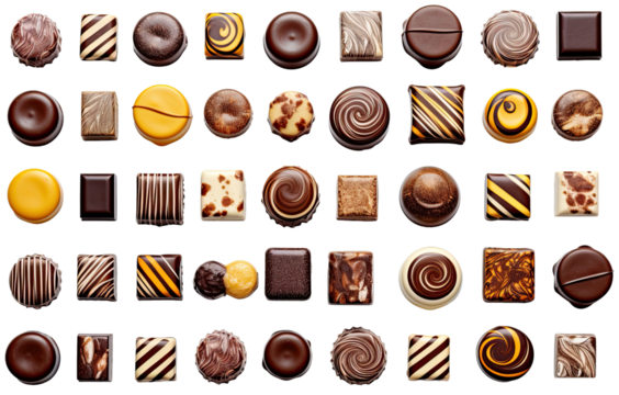 Assorted chocolates isolated on transparent background