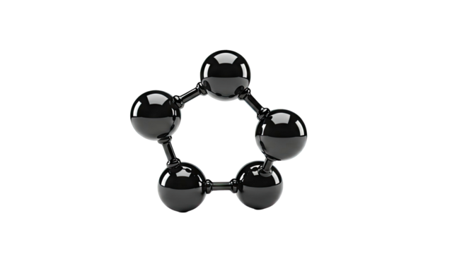 Glass molecular model showing chemical structure and atomic bonds, representing science education and research on transparent background