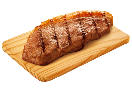 prato com lombo suíno assado acompanhado de molho de champignon isolado em fundo transparente