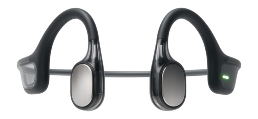 Sleek black bone conduction headphones innovative design comfortable fit superior audio isolated on transparent background