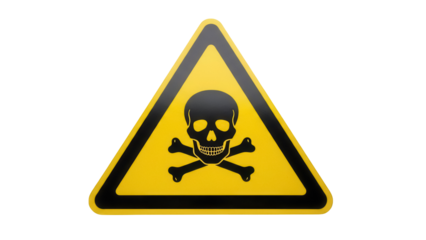 Yellow triangular warning sign with skull and crossbones isolated PNG, danger symbol for toxic or poisonous substances, hazard caution