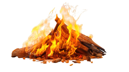 Vibrant campfire flames on transparent background illustration