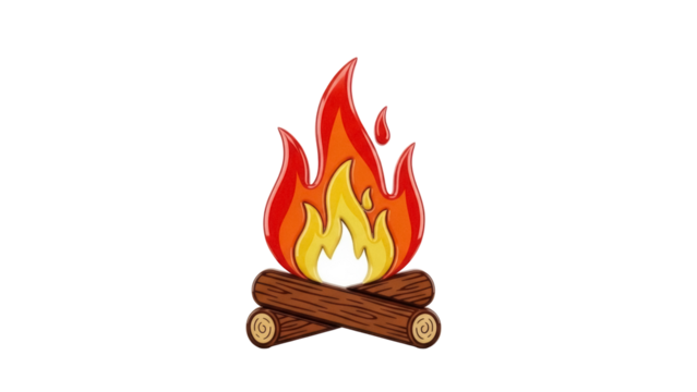 Realistic and Detailed Illustration of a Campfire with Burning Logs and Stone Border