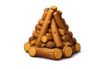Isolated burning bonfire with logs, a cozy campfire scene for outdoor adventures concept