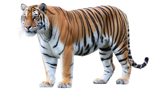 Majestic Bengal Tiger Standing and Looking Sideways, Wild Animal Isolated on a transparent background