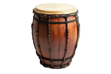 Tall traditional rope-tuned wooden drum isolated on transparent background