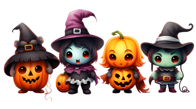 Cute halloween cartoon characters isolated on white background. Generative AI.
