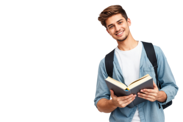 Transparent image of boys reading books thoughtfully