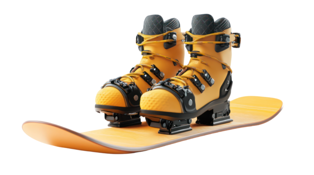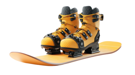 Snowboard with boots and bindings isolated on transparent background