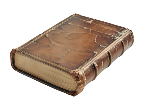 Antique LeatherBound Book with Ornate Details isolated on transparent background