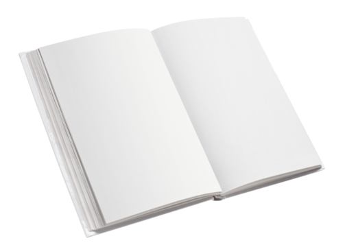 Hands holding open book mockup, blank hard cover mock-up isolated on white background