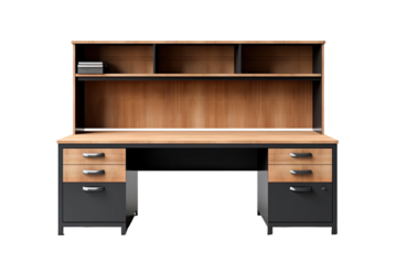 wood office desk with hutch isolated on a transparent background, generative ai