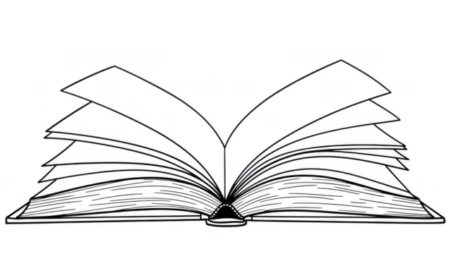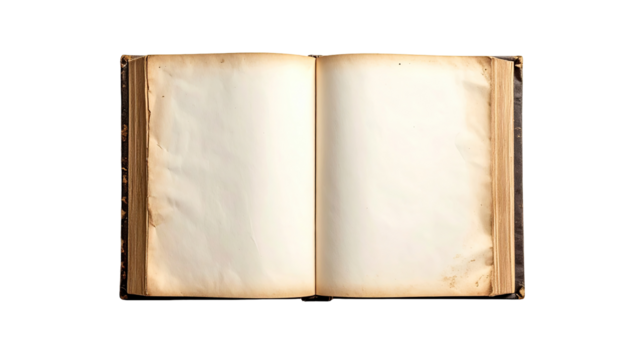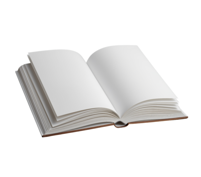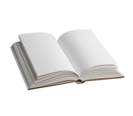 Open book with visible pages hardcover publication reading study knowledge education library studio lighting isolated on white background