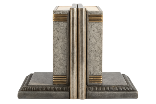 Modern metal bookend set background isolated on a Transparent background, PNG file.