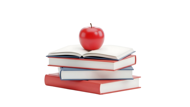 Stack of Books on Table. On a White or Clear Surface PNG Transparent Background..