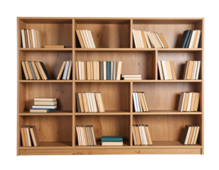 Cloud shaped wooden bookshelf with assorted books transparent background