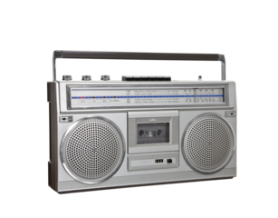 vintage boombox audio cassette recorder, transparent background