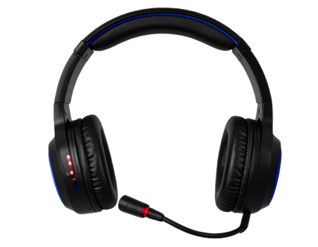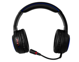 Immersive gaming headset with vibrant blue accents and boom microphone for ultimate audio experience