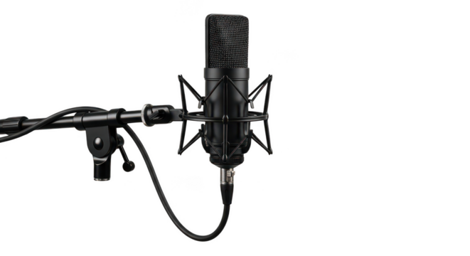 Professional studio microphone on adjustable boom arm ready for recording captivating audio