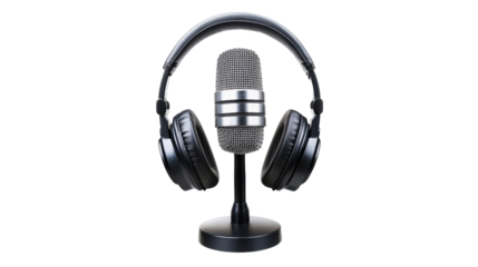 Vintage Microphone with Modern Headphones on a Stand