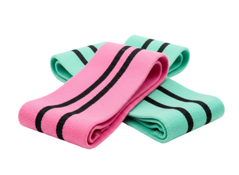 Set of pink and teal resistance bands for fitness isolated on transparent background