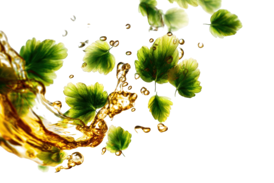 Abstract splash of liquid with leaves