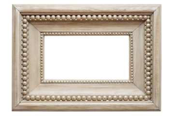 Ornate cream colored picture frame with bead detail on PNG background, picture frame, frame, ornate, decorative, cream, beige, wooden, wood, bead, beads, blank, empty, black, background, isolated, bor