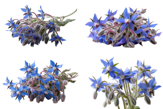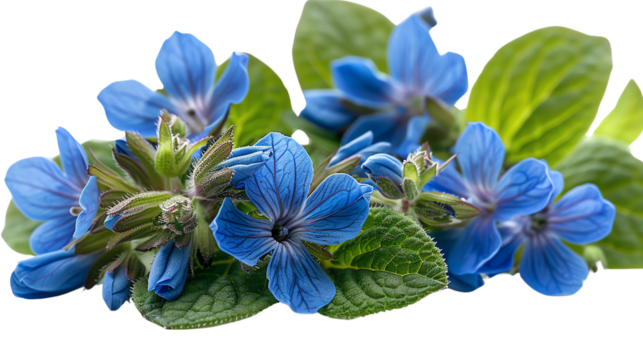 Borage flowers and leaves isolated on transparent background