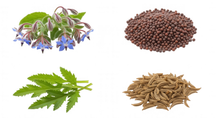Borage seeds with flowers isolated on a white background. Borago officinalis seeds and flowers.