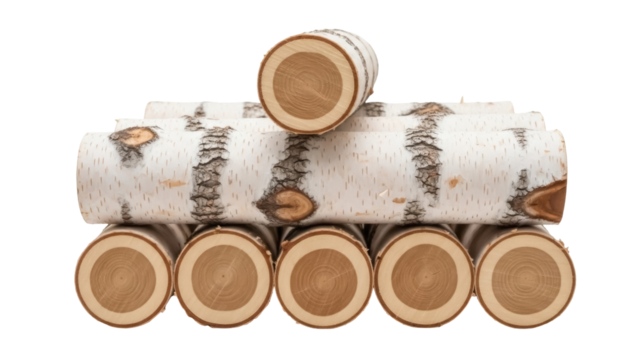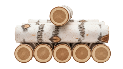 Isolated Stack of Birch Wood Logs for Burning in Fireplace or Stove, Wood Pile on White