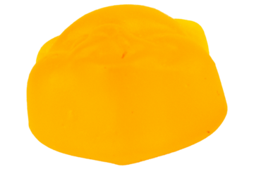 A vibrant pile of colorful, gummy bear candies against a transparent background. Each is a different vivid hue