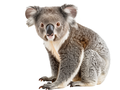 A detailed close-up of a brown bear standing proudly, showing strength and texture, isolated on a bright white background for stock and nature themes.