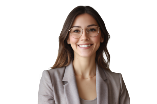 Confident businesswoman posing in formal attire on transparent background