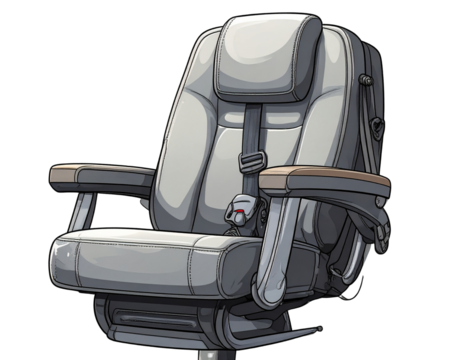 Cartoon-Style Grey Captain’s Chair with Seatbelt and Armrests