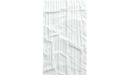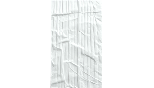 Textured, vertical folds and creases dominate a grayscale image of a crumpled white surface
