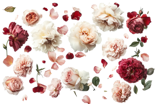 Artistic floral and botanical arrangement with transparent background