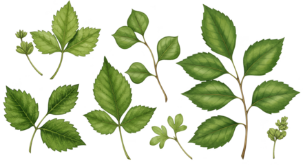 Illustration of green leaves on transparent background isolated nature elements