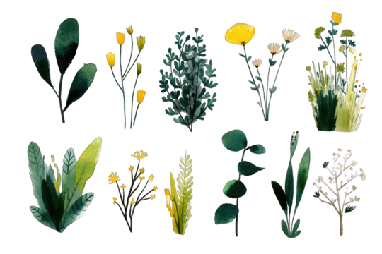 Colorful botanical illustration on transparent background