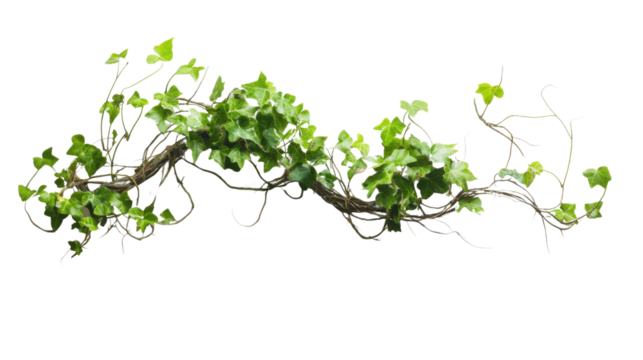 Delicate ivy vines curl and intertwine, their bright green leaves reaching outward, embodying nature’s resilience and ability to flourish in diverse environments, isolated on a transparent background