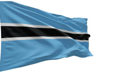 Flag of Botswana waving on flagpole with clear background, national symbol of Botswana for patriotic and educational use