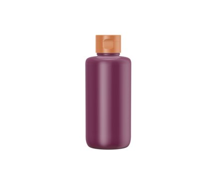 Purple cosmetic bottle with orange flip top cap for beauty products. 3d illustration