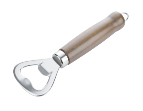 Classic bottle opener with wooden handle, isolated on transparent background, ready for easy integration into designs