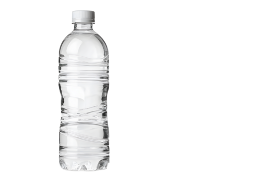 Clear plastic bottle filled with water placed on white background for product display and marketing purposes