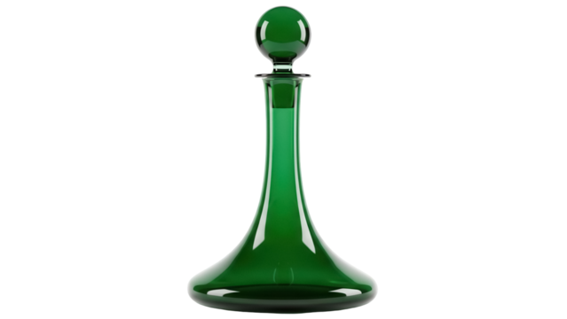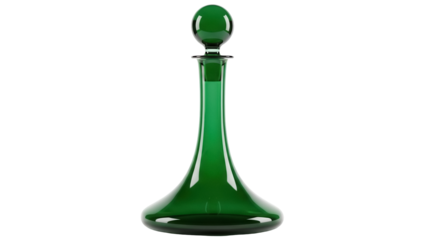 Elegant green glass decanter with stopper isolated PNG, vintage liquor bottle for serving wine and spirits on transparent background
