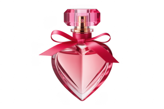 Pink Heart- Shaped Perfume Bottle with Ribbon heart-shaped isolated on a transparent background