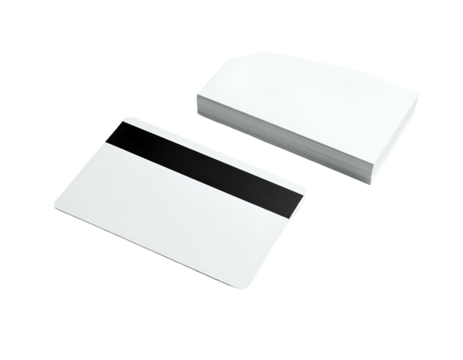 Close-up shot of a stack of white cards and a single card with a magnetic stripe