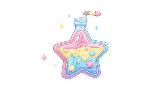 Puffy sticker style 3D illustration, Yumekawa star drink